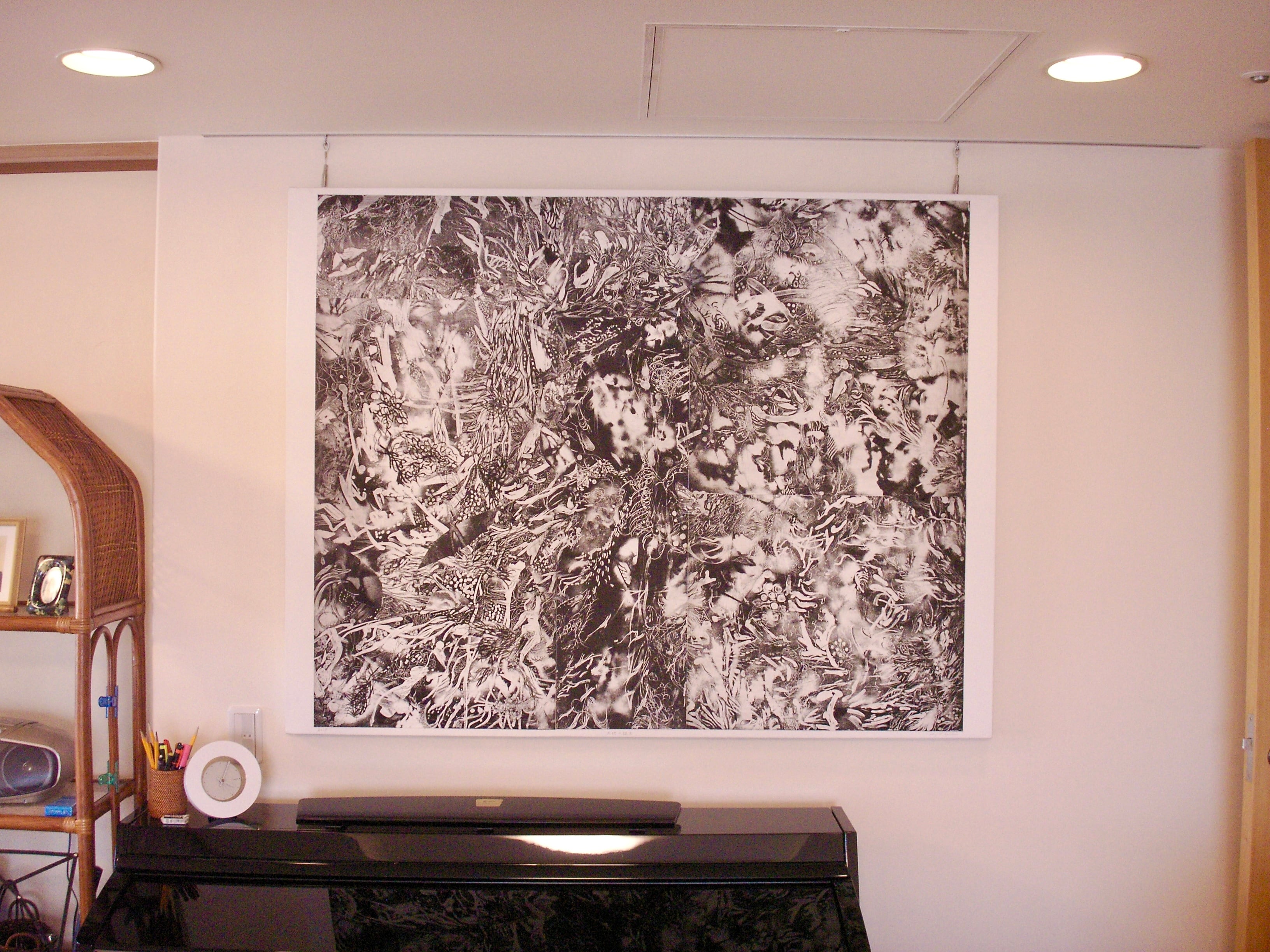縦112cm、横145cm 木製パネルに版画用紙をコラージュ。厚みは3cm